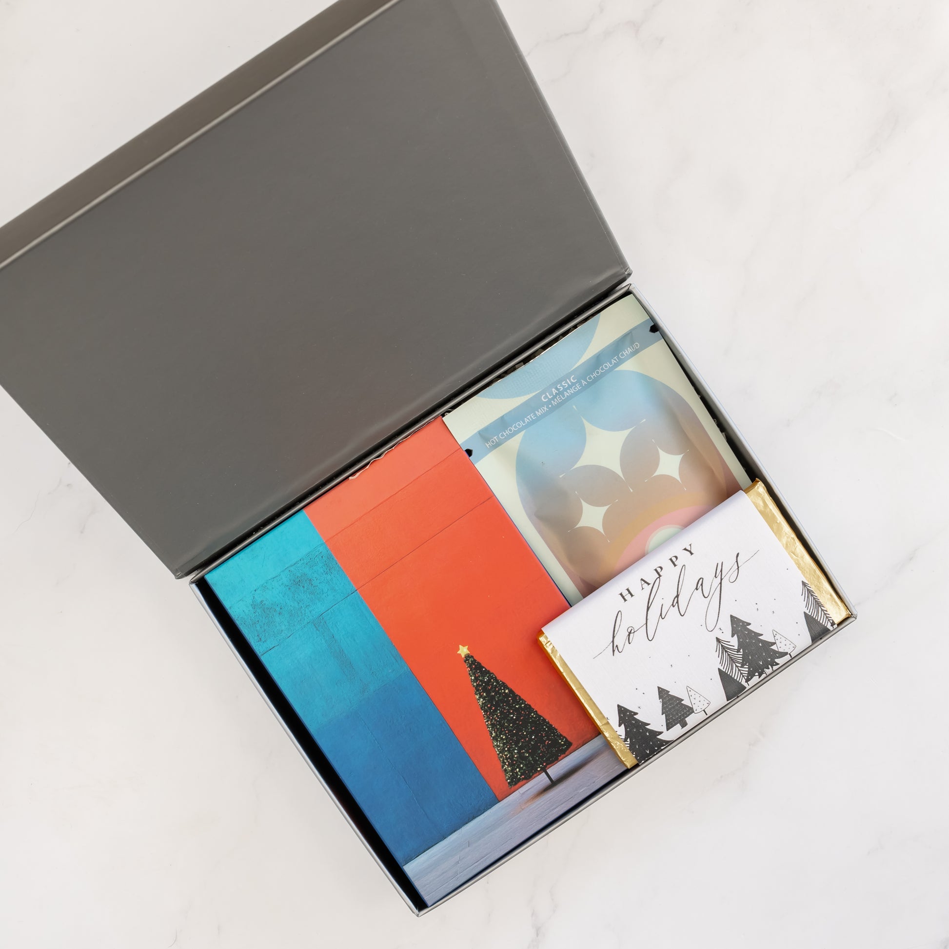 This quaint box comes in one of our silver magnetic closure gift boxes and is a perfect night in!